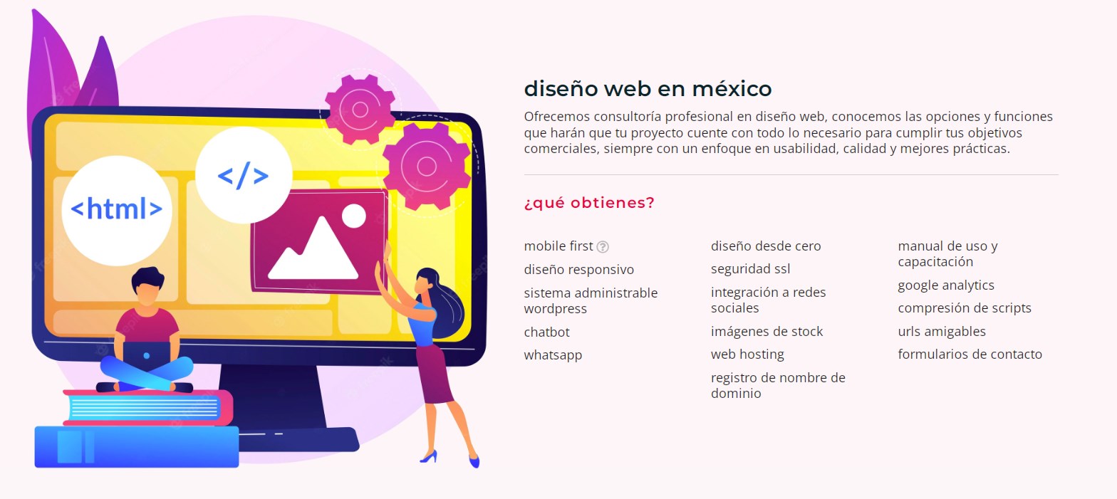 Diseño a la medida, creativo y responsive en plataforma html5 - 8 a 10 Secciones - Banner Animado Galeria de Imágenes o videos - Cuentas de Correo Ilimitadas* - Formulario de Contacto (5 campos) Mapa de Ubicación Alta en Buscadores - Hosting y Dominio Gratis por 1 año - Chat Mensajería de Voz en el Sitio - Soporte Técnico - Visible en Dispositivos Móviles - Links a redes sociales.
